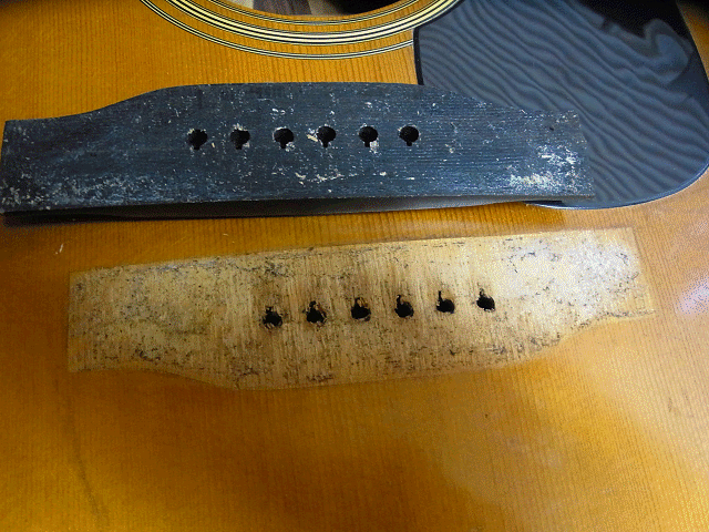 70年代のD-35です。もちろんトラスロッドは入ってなくSQロッドです。サドルは限界付近まで削ってありますが弦高が12フレット上で4mm以上あります。これでは弾けません。